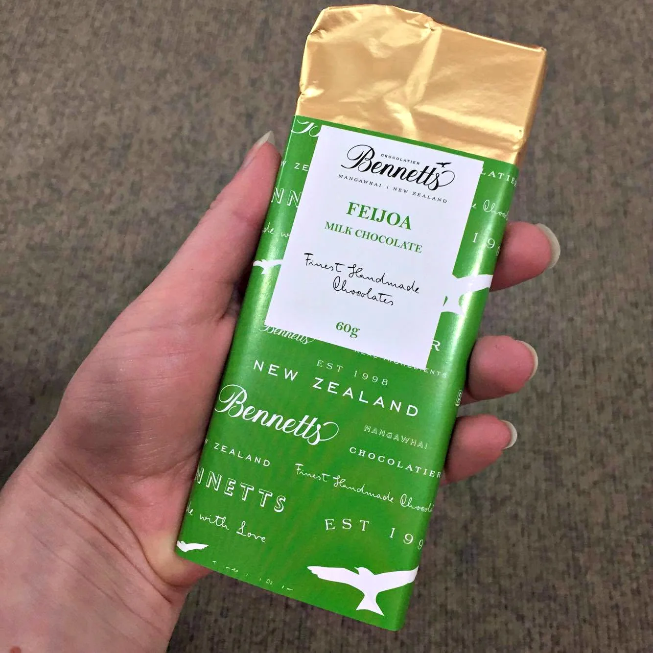 I've gotten into a seriously bad (read: excellent) habit of buying myself a little bar of chocolate with my lunch purchase. I usually grab a salad from Farro next to my work, and there's always an array of Bennetts' chocolates to try. The feijoa is definitely my favourite, but I've tried nearly all of them now and I thoroughly recommend!
